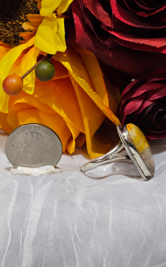 .925 Sterling Silver Bumble Bee Jasper Ring